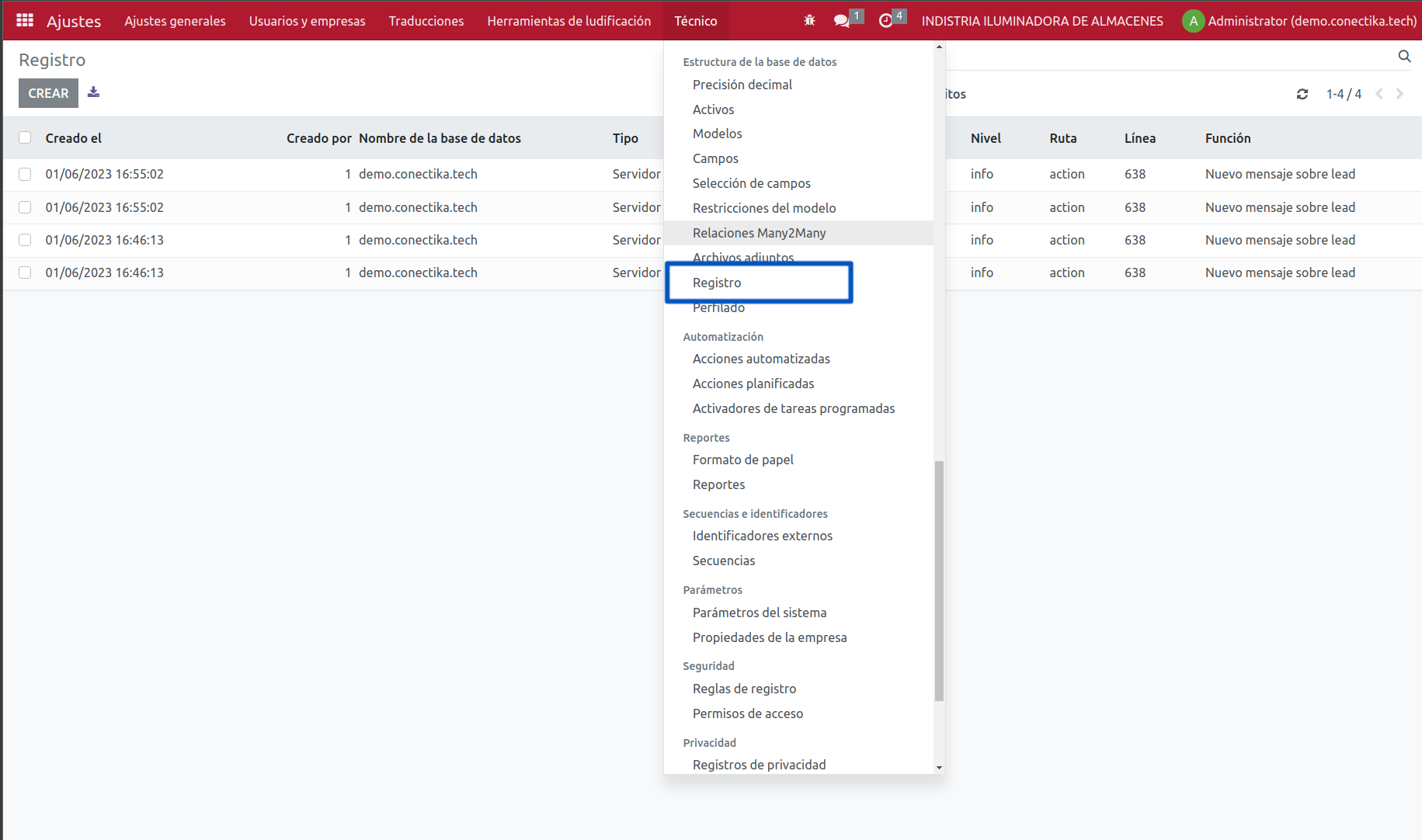 En el menú "Técnico" que ahora es visible hacer click en la opción "Acciones automatizadas"