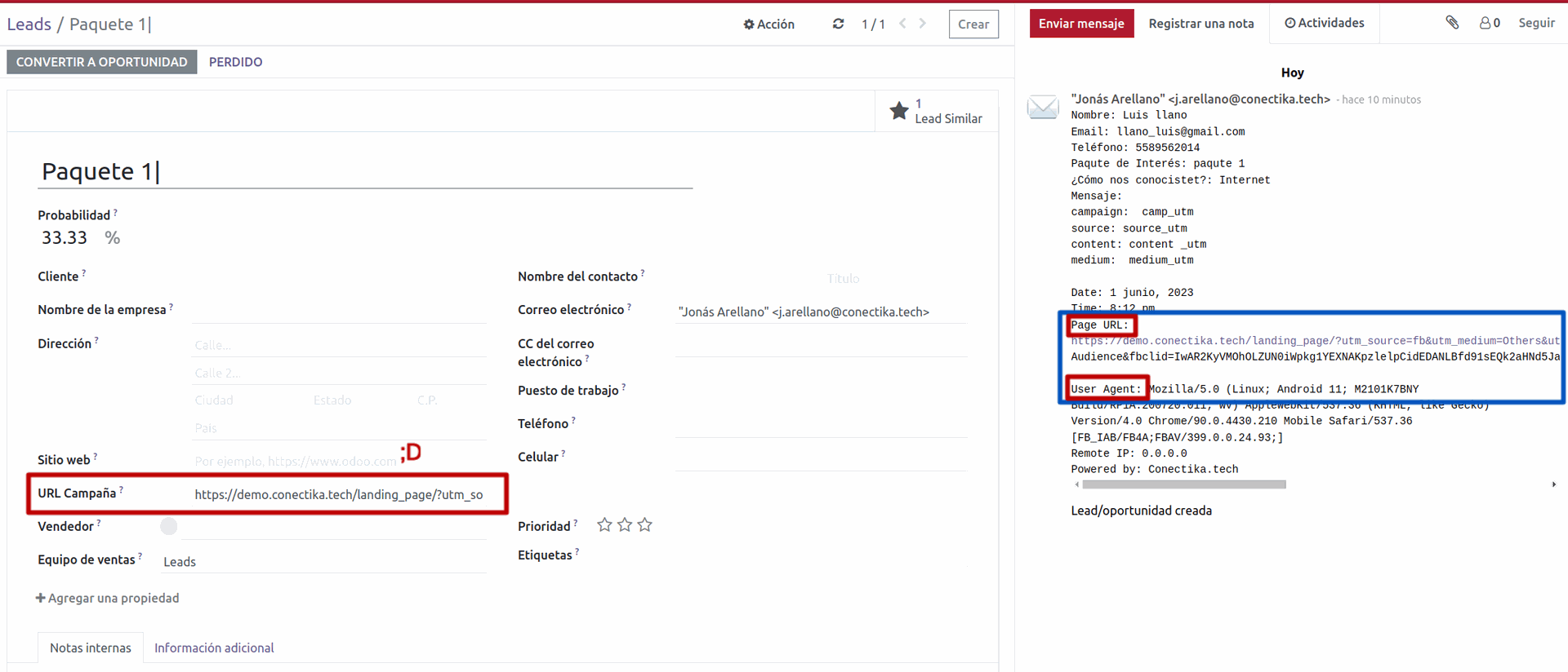 -Crear acciones automatizadas sobre el modelo Mensaje que vengan en Lead/Oportunidad.